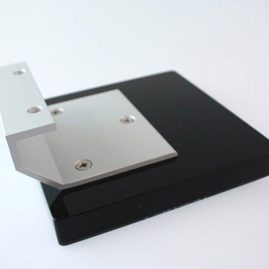 - Materiale: Bagplade i 20 mm opal acryl, sammenstøbt med 2 mm klar acrylplade. Polerede kanter. Gevindbøsninger i bagplade for fastgørelse af konsol.