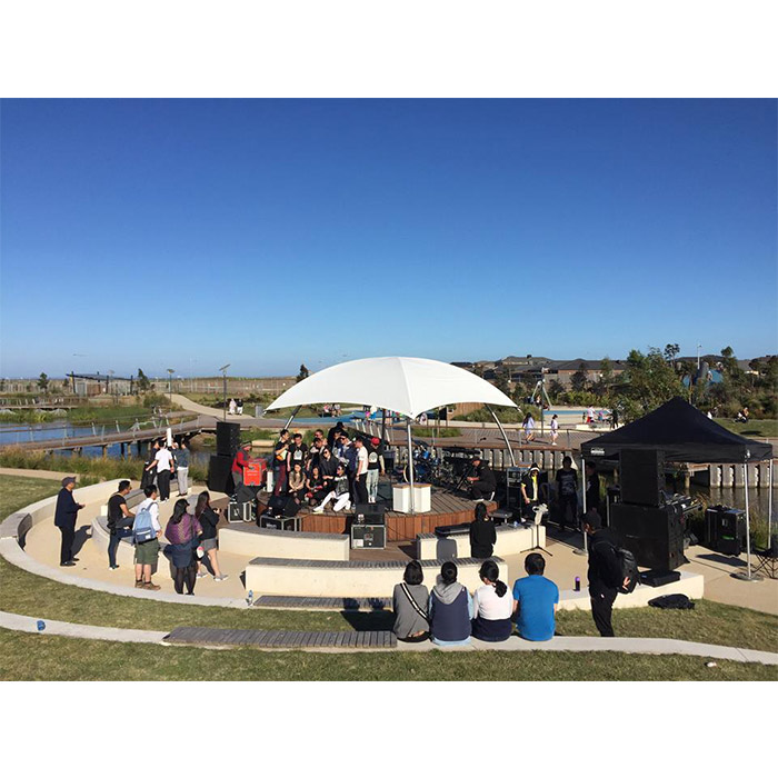 • Muligt at montere lys, lyd, varme og tv-skærme og Kompatibel med Layher-scener